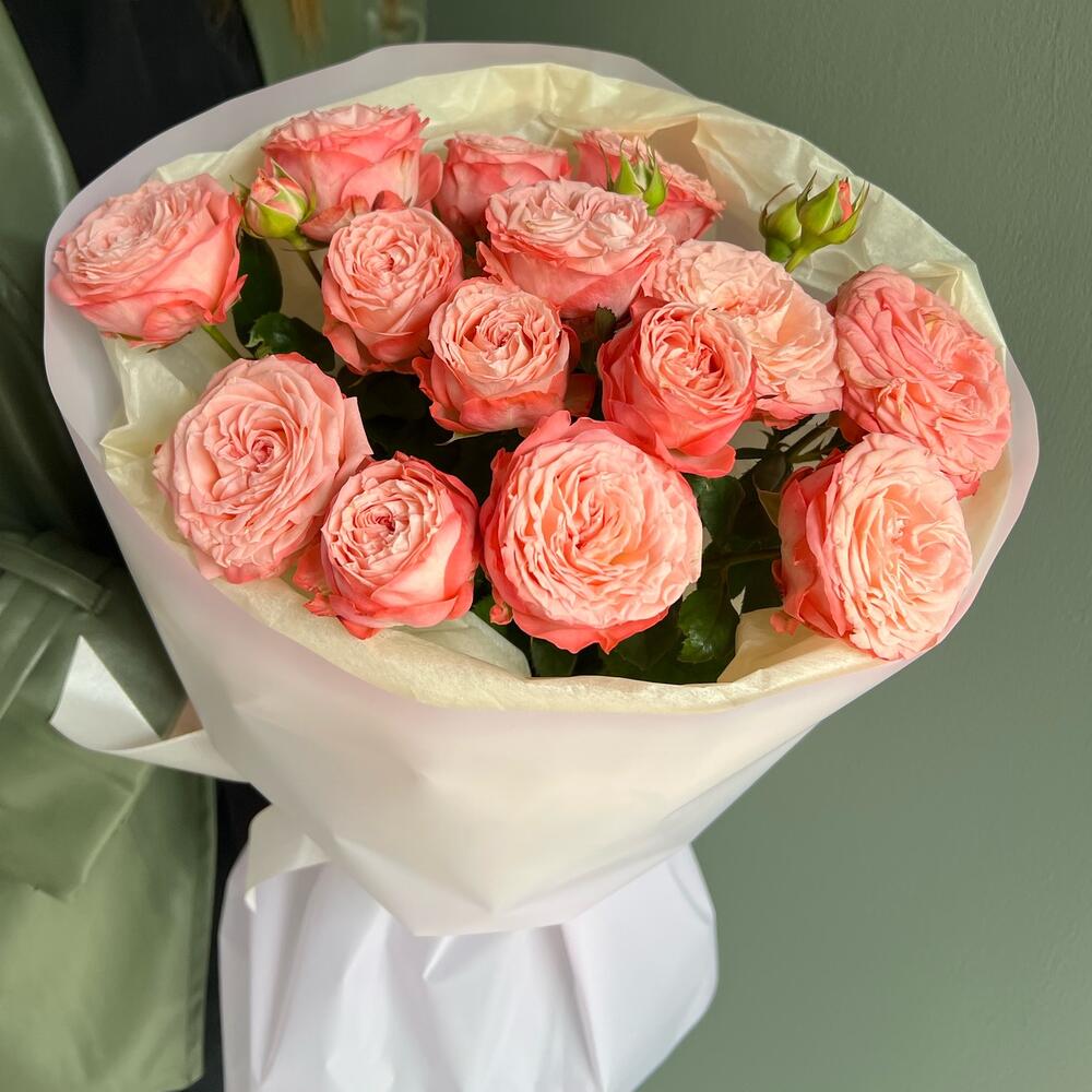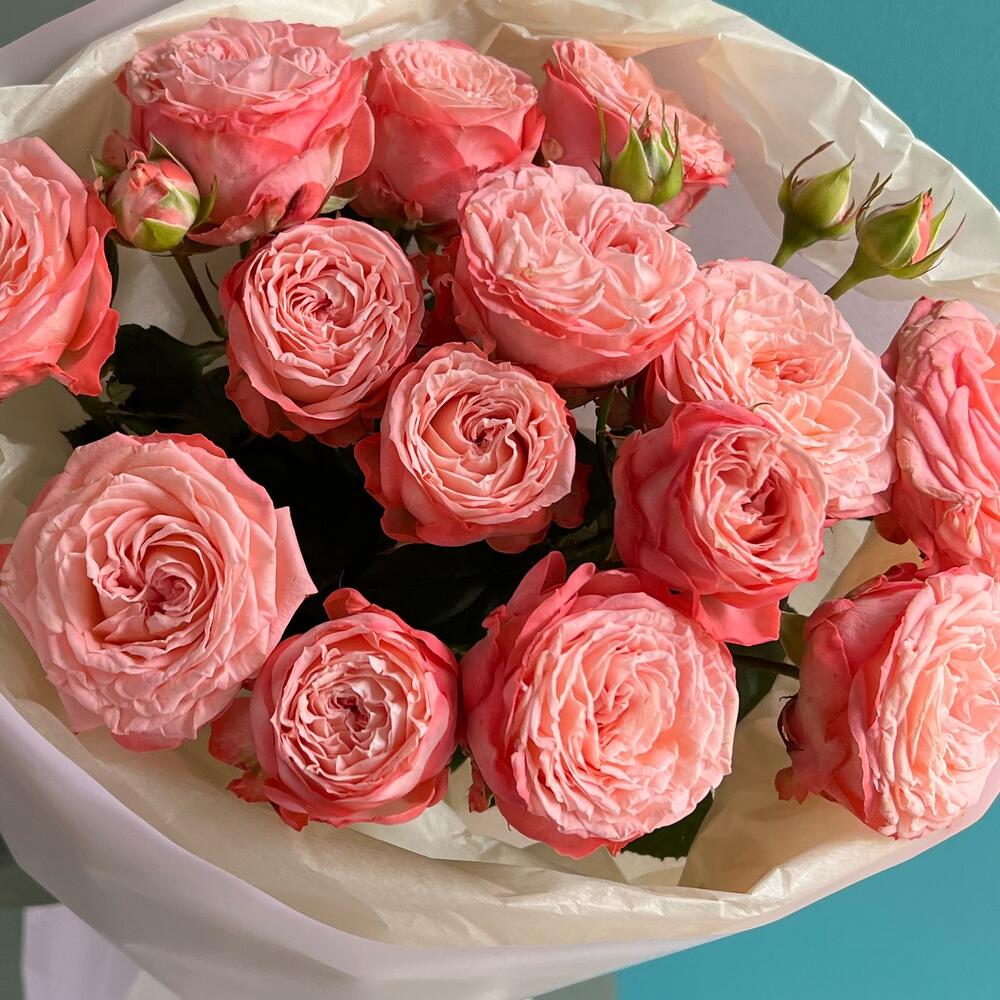 Упаковка дизайнерская – 2 шт.Кустовая роза пионовидная – 3 шт.