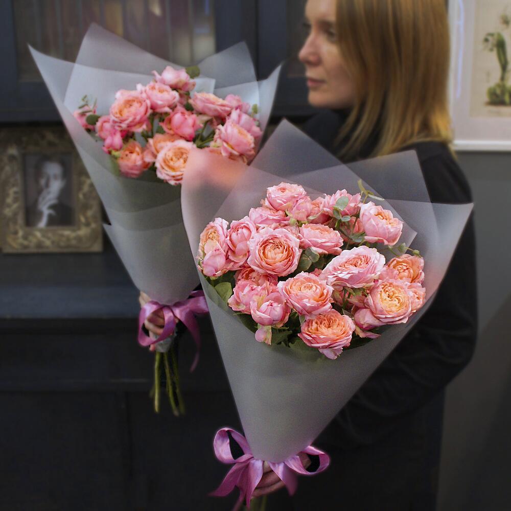 Букет пионовидных кустовых роз сорта Mansfield Park