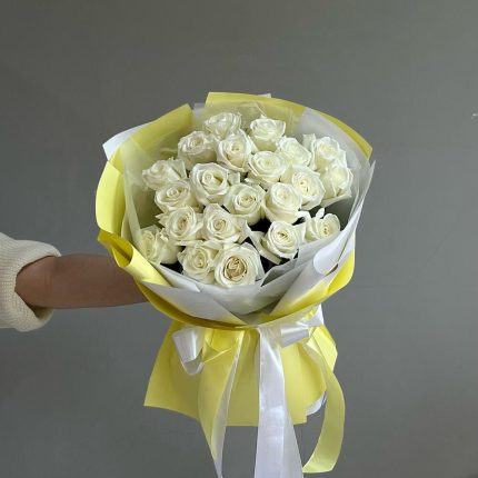 Лента – 4 шт. Роза кустовая – 15 шт. Тишью – 2 шт. Слюда упаковка – 2 шт. салфетка декоративная – 5 шт.