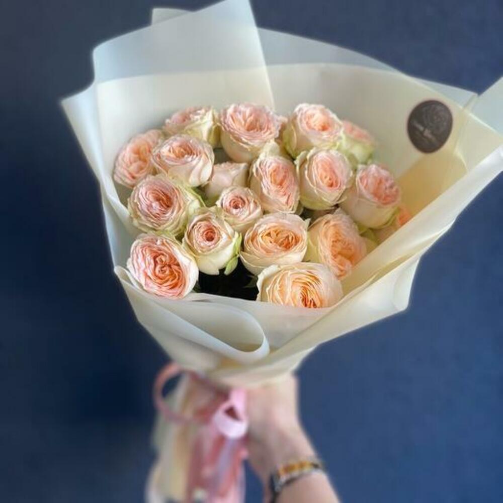 Праздничный букет из пионовидных роз «Молочная нежность»