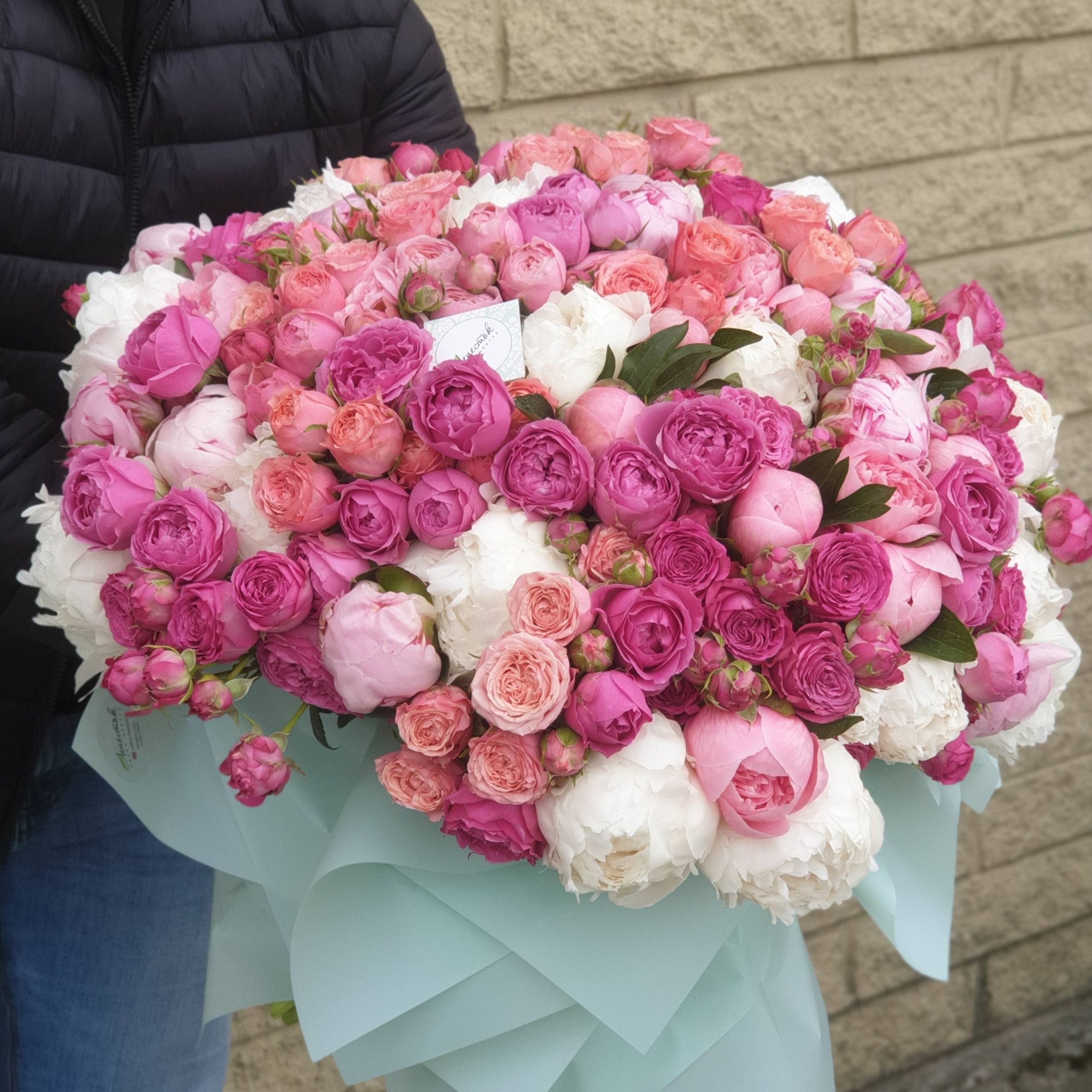 Букет из пионов и пионовидных роз ( 101 стебель)