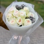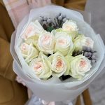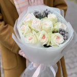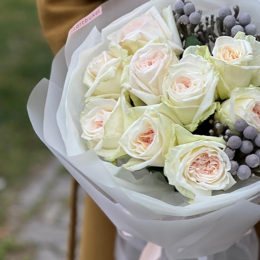 Нежный букет с розами и эвкалиптом