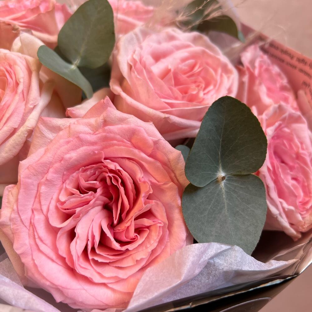 Букет из пионовидных роз и эвкалипта
