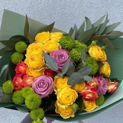 Категории: Кустовые розы, Пионовидные розы, Розы, Эвкалипт
