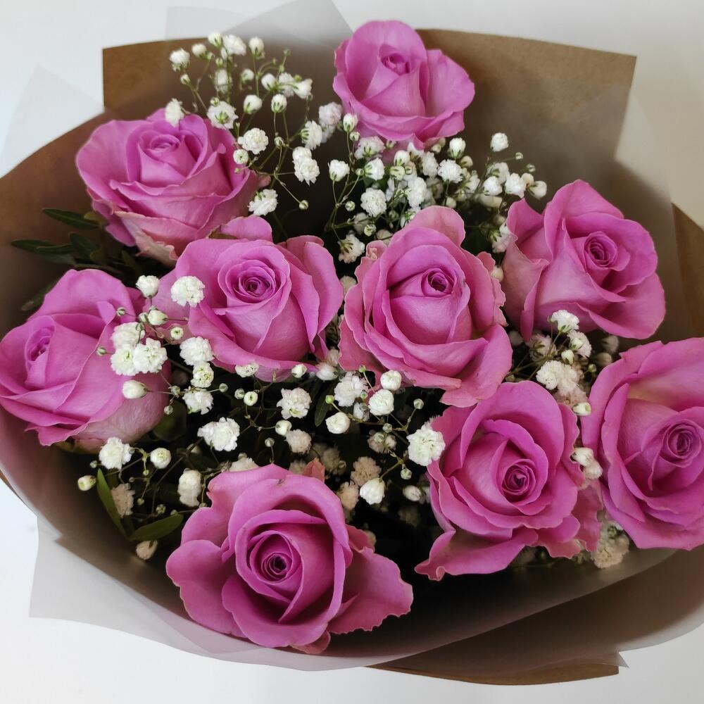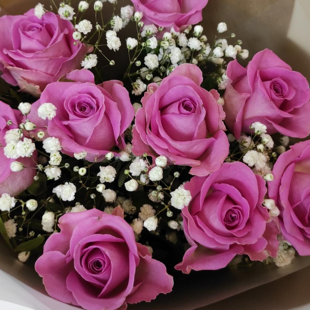 Роза – 9 шт.Гипсофила – 1 шт.Крафт – 1 шт.