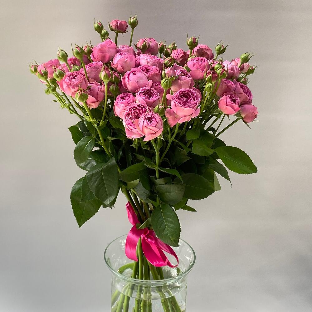 Лента атласная – 1 шт.Крафт упаковка – 1 шт.Аквабокс – 1 шт.Открыточка с вашими пожеланиями – 1 шт.транспортировочная упаковка – 1 шт.роза кустовая пионовидная мисти бабл – 11 шт.