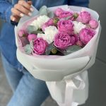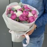 Букет Лилас из кустовых пионовидных роз и диантуса