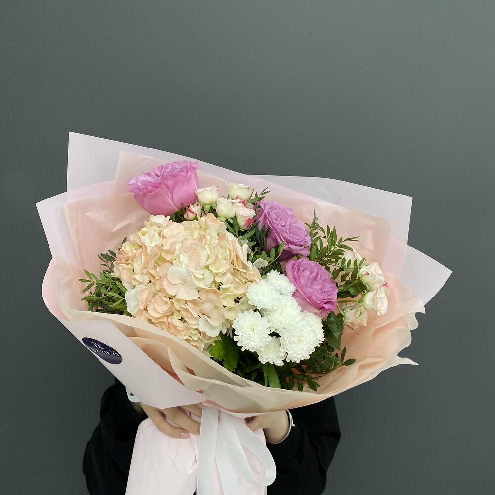 Авторский букет 1. гортензия, пион кустовая роза, роза