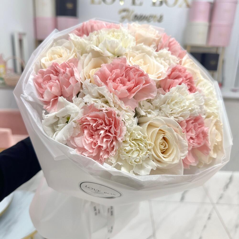 Категории: Гвоздики, Лизиантусы, Розы