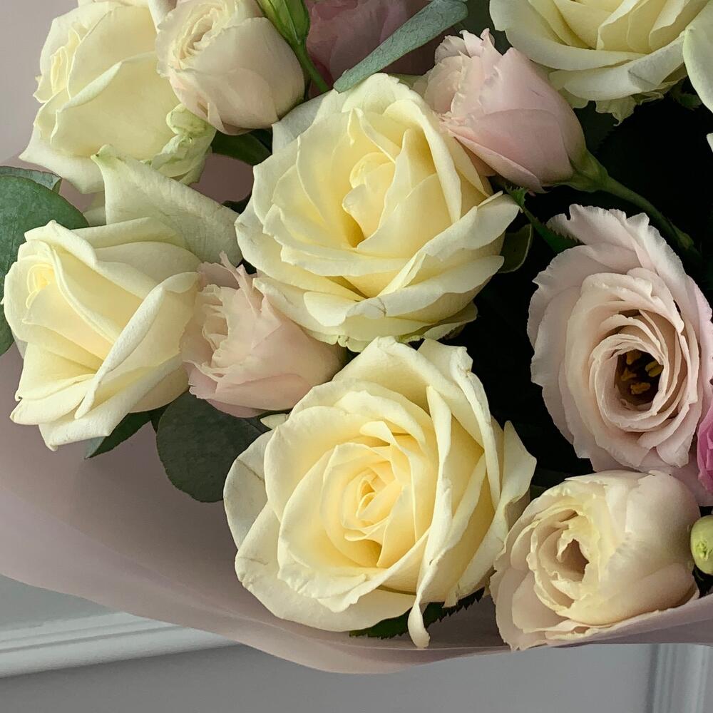 Букет «Розы и лизиантусы»