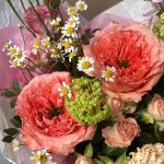 Букет с диантусом, пионовидной розой и матрикарией