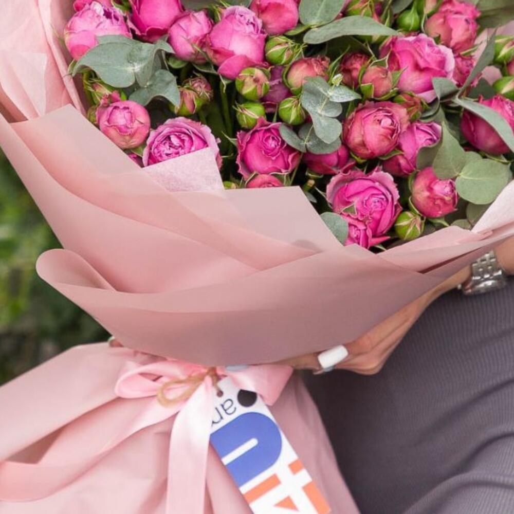 Эвкалипт – 5 шт. кустовые розы – 10 шт.