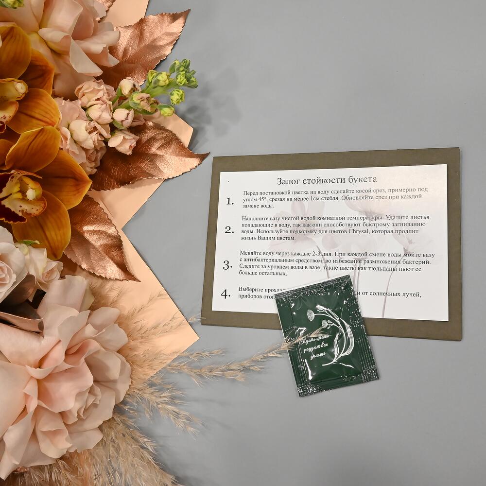 - Сроки возврата: Претензии по качеству букета принимаются в течение 24 часов с момента его получения.