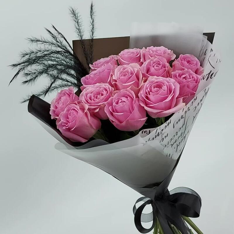 Роза Эквадор – 13 шт.Упаковка дизайнерская – 1 шт.ковыль крашеный – 1 шт.