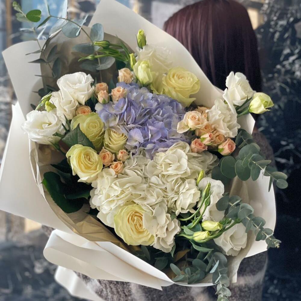 Букет разноцветных гортензий