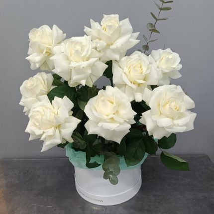 “Атлас☁️” – цветочная композиция с зефиром в деревянном ящике