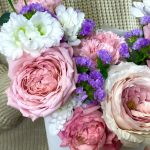 Букет цветов в фиолетовых, розовых и кремовых тонах