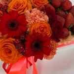 Цветы в коробке в клубникой