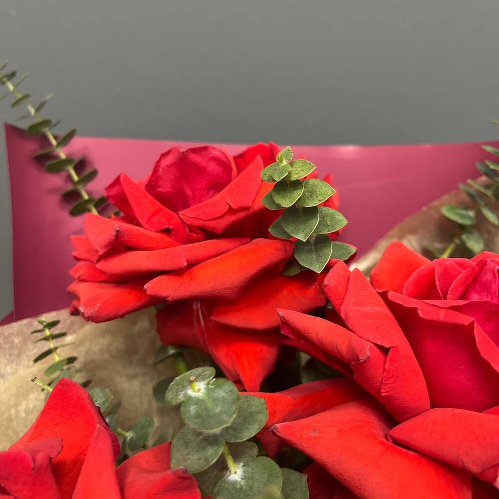 Французские розы с эвкалиптом, 7 штучек