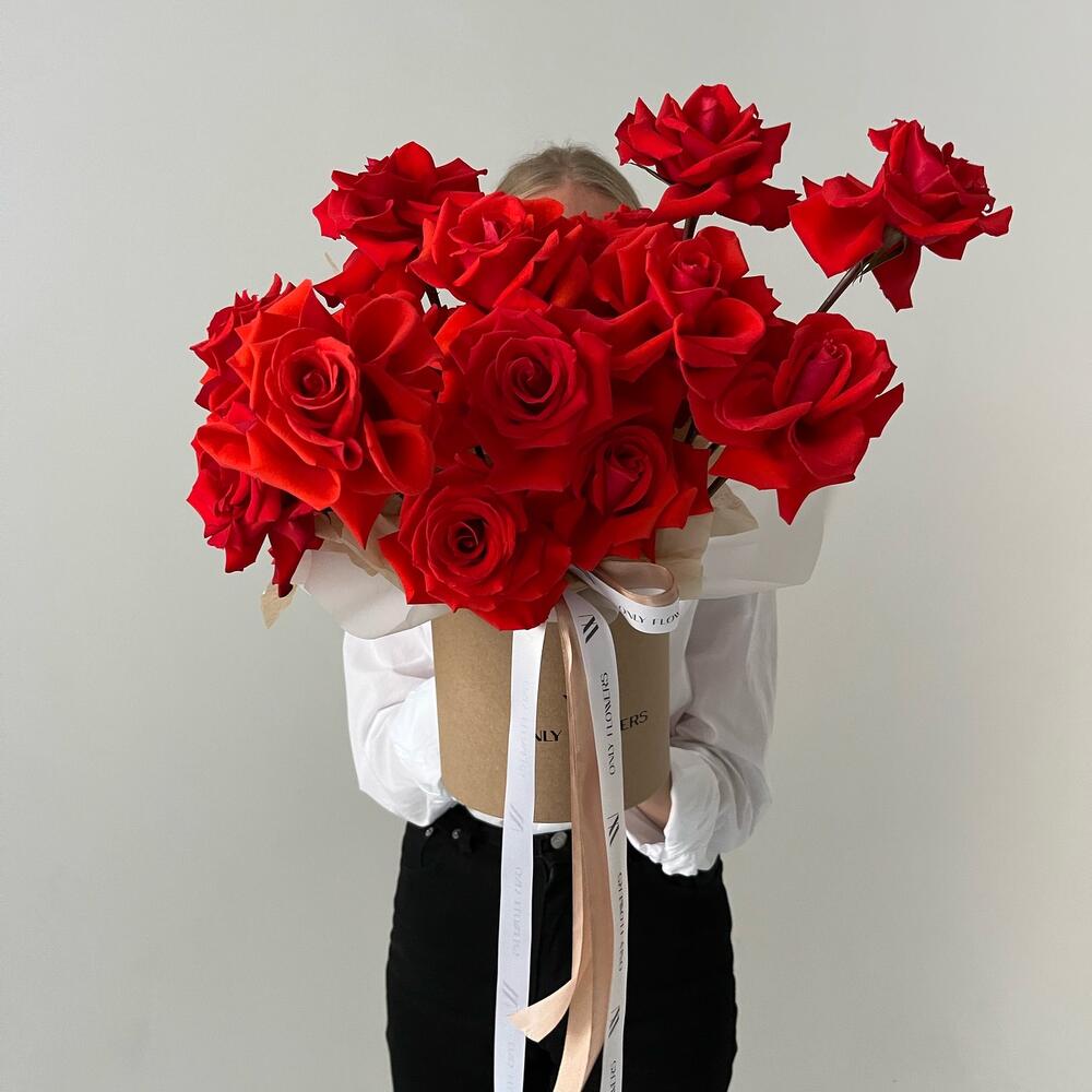 Роза – 19 шт.Коробка шляпная – 1 шт.