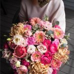 Нежный огромный букет с французскими розами, пион розами и орхидеей