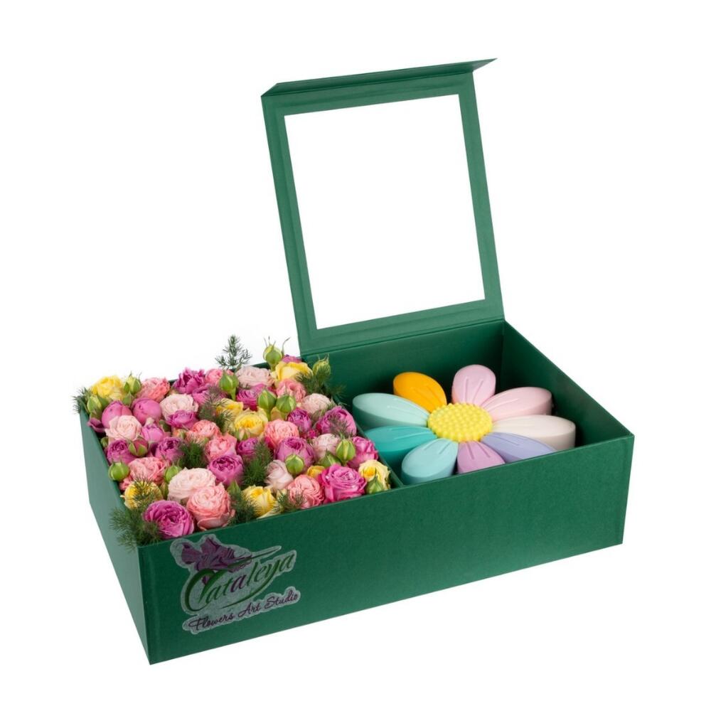 кустовые розы – 15 шт. торт желе – 1 шт.