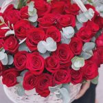 Корзина с 51 красной розой с эвкалиптом
