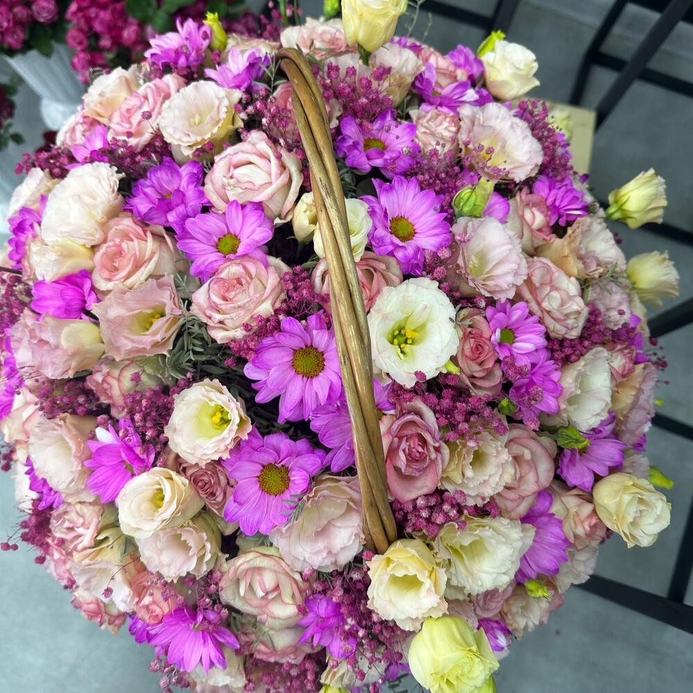 Метки: от 5000 руб, цветы в корзине