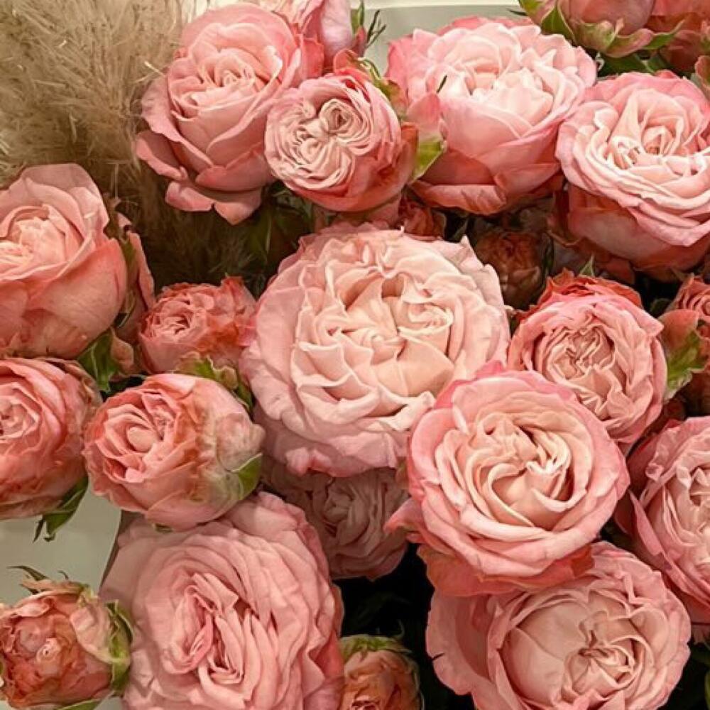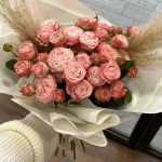 мадам бомбастик пионовидная кустовая роза – 11 шт. Открыточка с вашими пожеланиями – 1 шт. инструкция по уходу за цветами – 1 шт. Упаковка дизайнерская – 1 шт. пампасная трава – 2 шт.