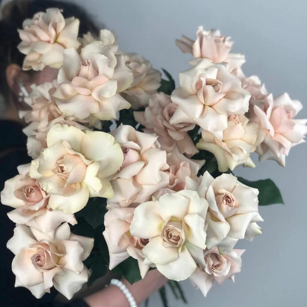 Букет из 15 персиковых пионовидных роз Flash Back с фисташкой