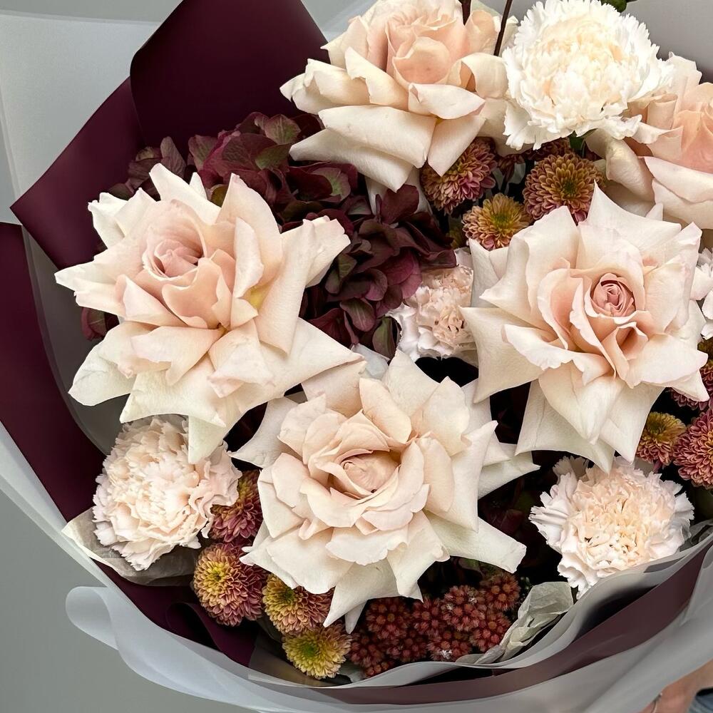 Гортензии, Кустовые розы, Лизиантусы, Пионовидные розы, Розы