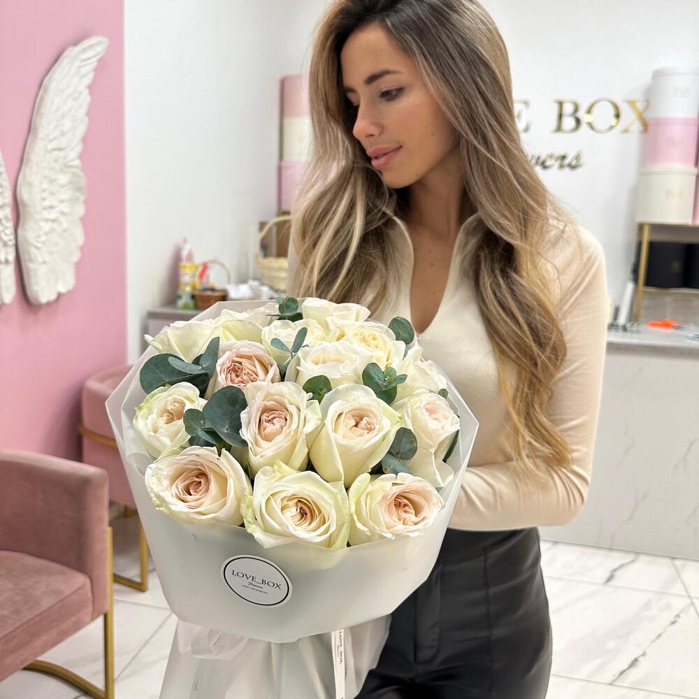 Гвоздики, Кустовые розы, Лизиантусы, Пионовидные розы, Розы
