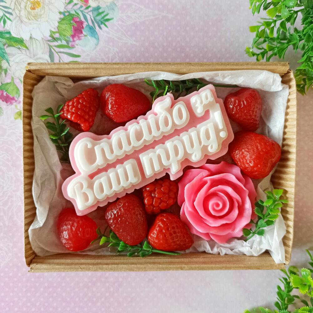 Мыло ручной работы в наборе Спасибо за ваш труд. Это подарок комплимент учителю, воспитателю, врачу. Любому человеку, которого Вы хотите отблагодарить, можно подарить этот милый презент. Мыло ручной работы душистое, запах фруктовый. В составе мыла есть глицерин, поэтому … Показать ещёоно не сушит кожу рук и прекрасно мылится. Этот подарочный набор дарят на выпускной в школе или детском садике, на 1 сентября, на день учителя, на день воспитателя, на новый год, на 8 марта.
