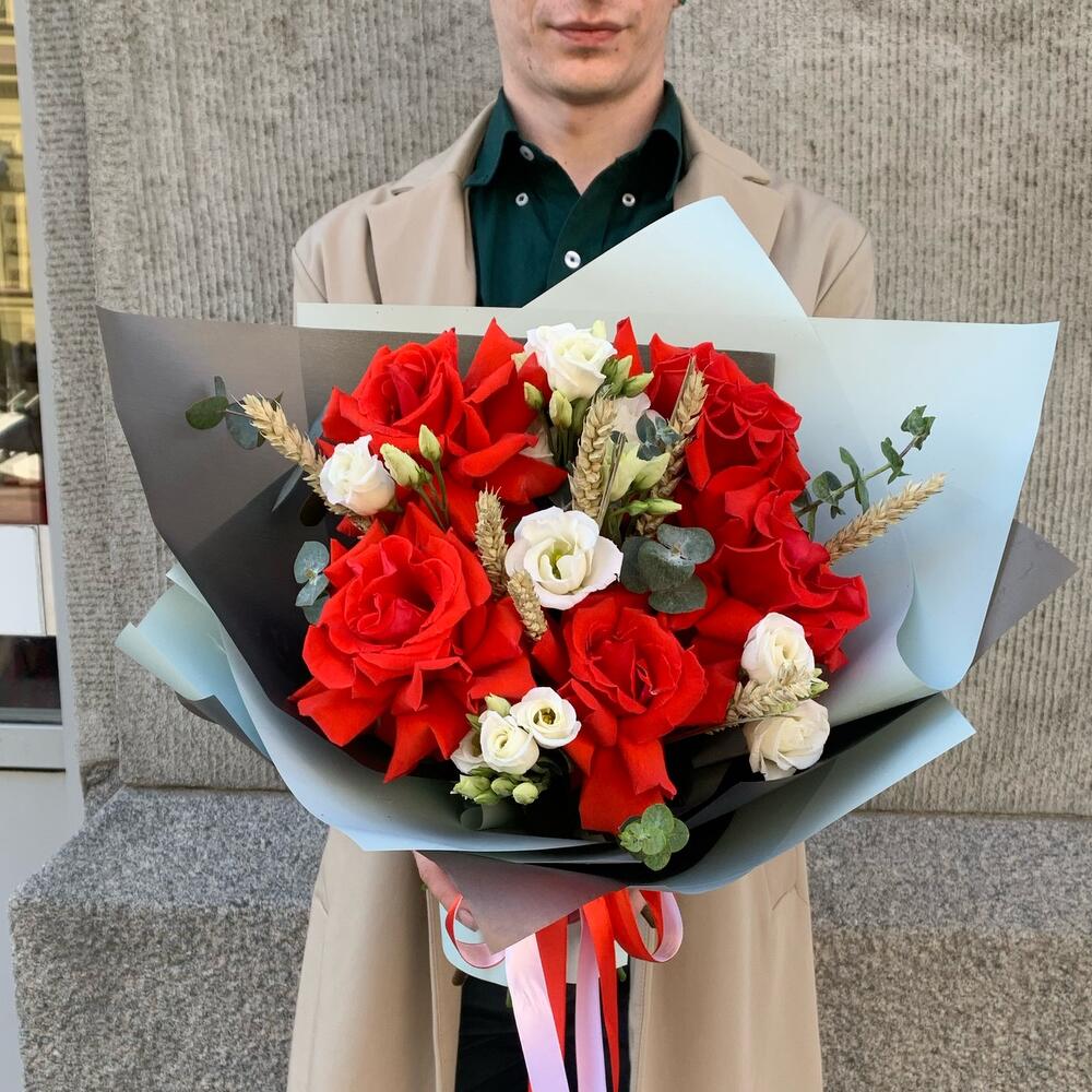 ПРИТЯЖЕНИЕ – это букет, который создан, чтобы очаровать и покорить сердце вашего избранника или избранницы. Французские розы – это цветы страсти и любви, которые выражают ваше сильное чувство. Эустома – это цветы нежности и грации, которые подчеркивают вашу изысканность и вкус. Пшеница – это символ плодородия и изобилия, который желает вашему партнеру счастья и процветания. Этот букет – идеальный подарок для романтического свидания или годовщины отношений.Чтобы цветы в вазе радовали вас дольше, мы подарим вам специальное средство, которое надо будет добавить в вазу с холодной водой. Не забудьте подрезать цветы каждые 2 дня и менять воду – это тоже продлевает им жизнь.