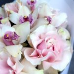 Орхидеи с рускусом в шляпной коробке. Букет 278 ALMOND ROSES