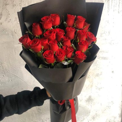 Букет из 19 красных роз. Букет 115 ALMOND ROSES