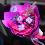 «Лавандовое созвездие» Букет из розы, гвоздики, статица и хлопка
