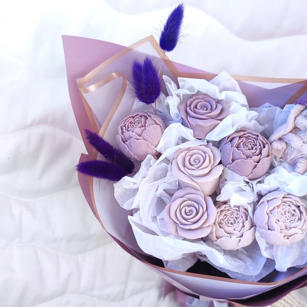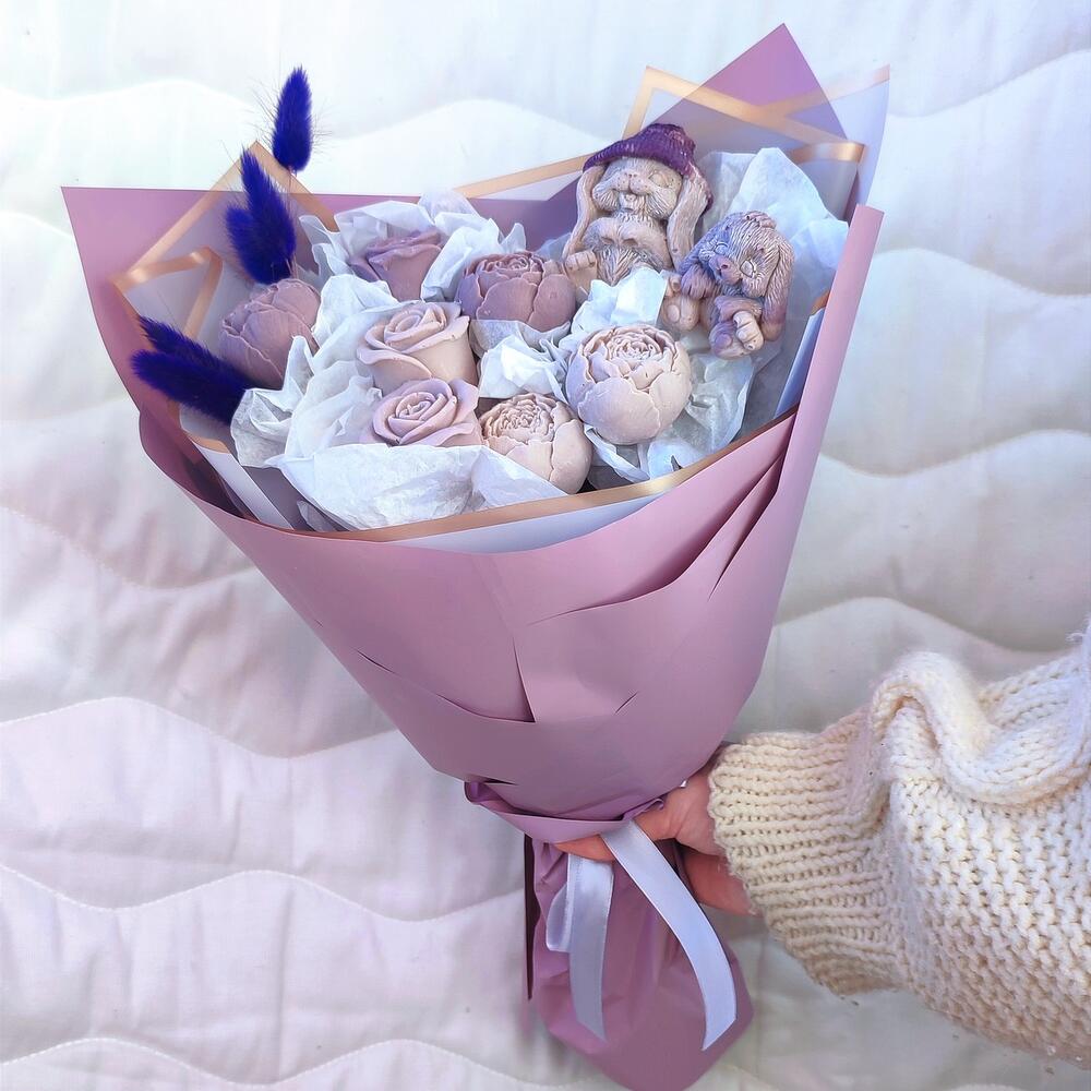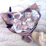 «Лавандовое созвездие» Букет из розы, гвоздики, статица и хлопка