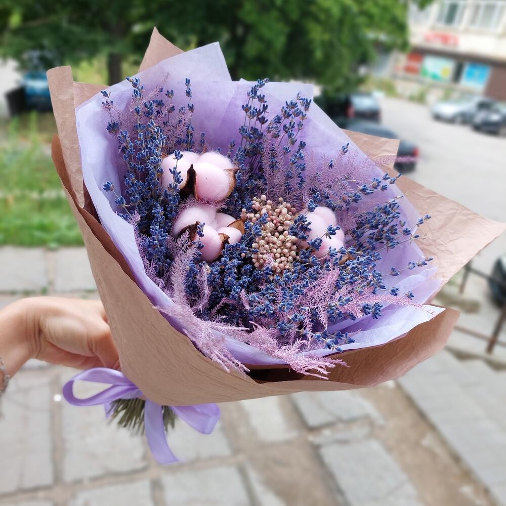 Букет из сухоцветов Лаванда с хлопком
