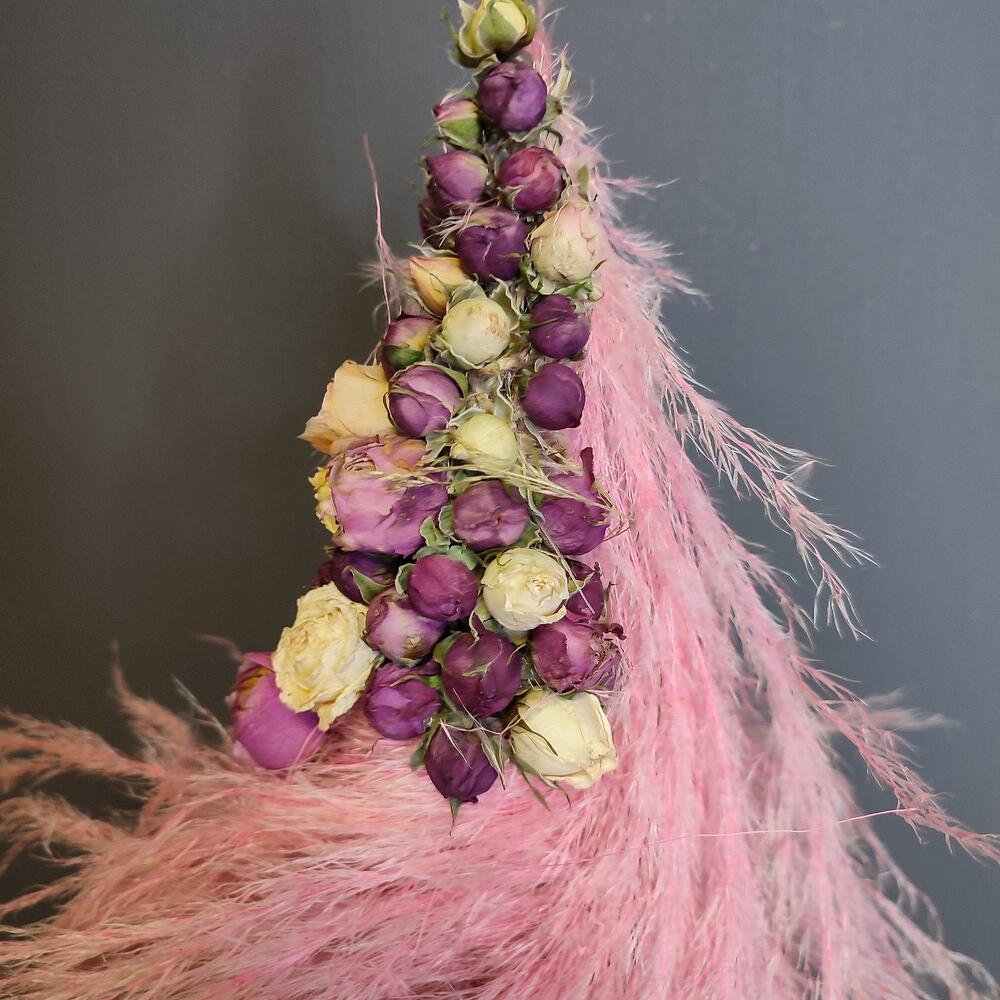 основа сено – 1 шт.пампасная трава – 2 шт.сухоцветырозы – 2500 шт.