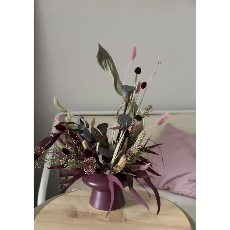 Интерьерная композиция из сухоцветов в розово-сиреневых тонах