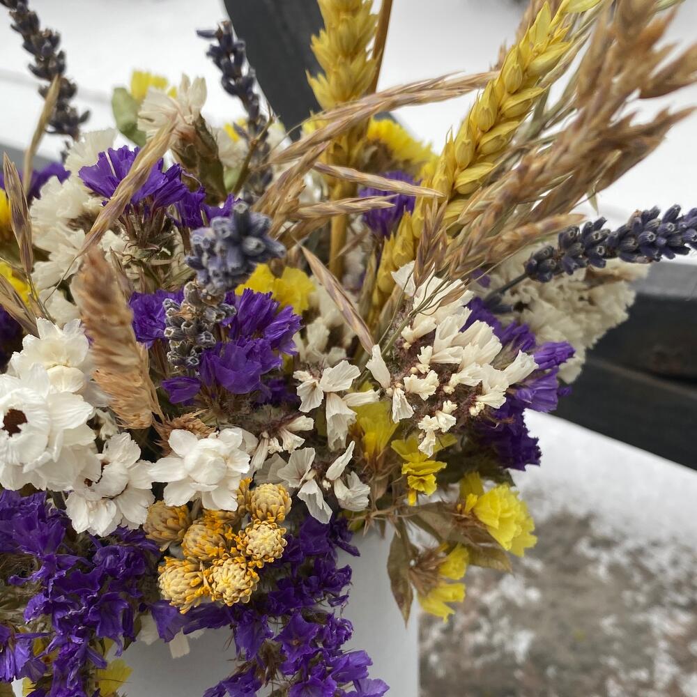 гелизризум – 1 шт.акроклинум сухоцвет – 20 шт.злаки микс – 10 шт.Статица – 9 шт.