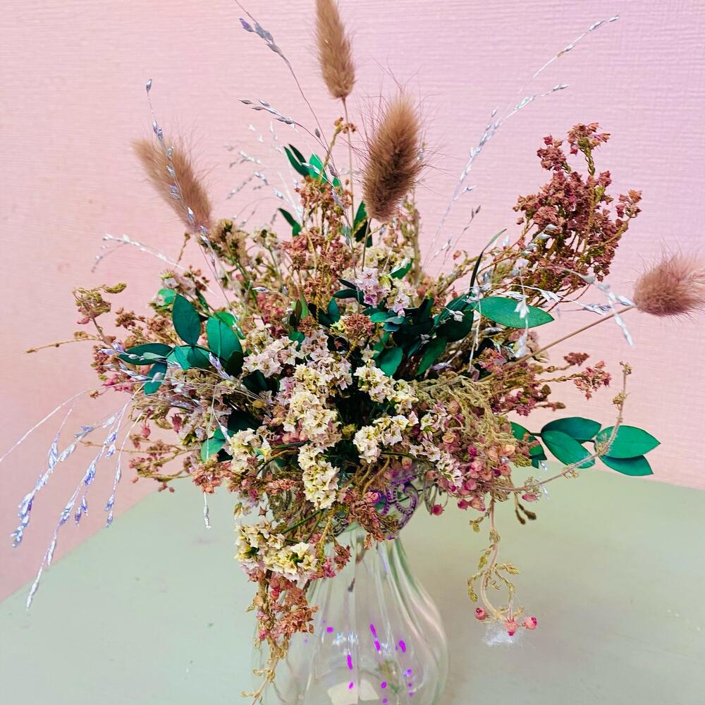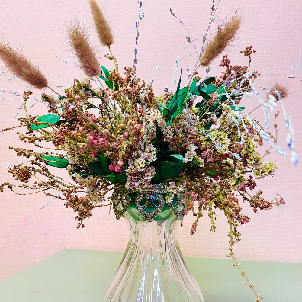 Эвкалипт – 3 шт.Ваза стекло – 1 шт.Лагурус – 5 шт.Оазис флористический – 1 шт.ветки декоративные – 25 шт.