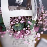 “Сиреневый туман” – композиция из гипсофилы в шляпной коробке