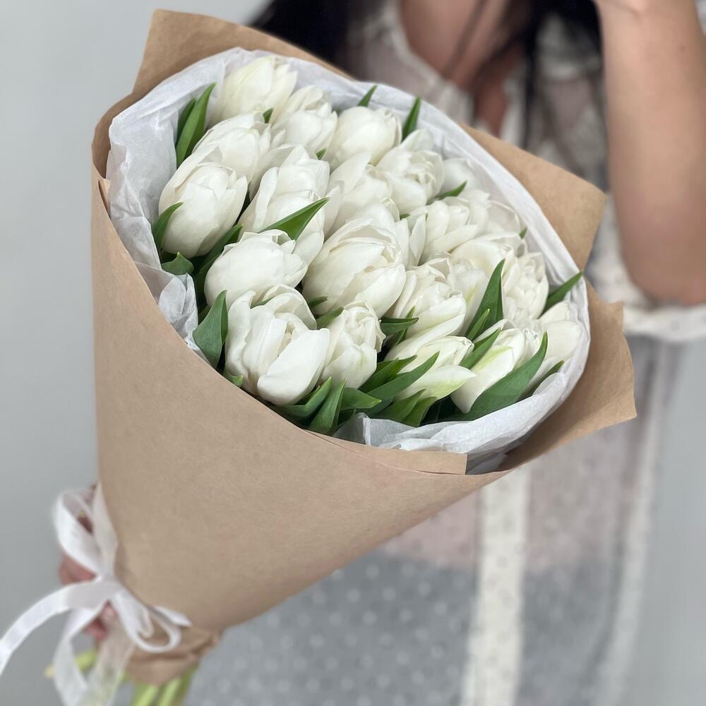 Лента – 2 шт.Упаковка – 2 шт.пионовидные тюльпаны белые – 25 шт.