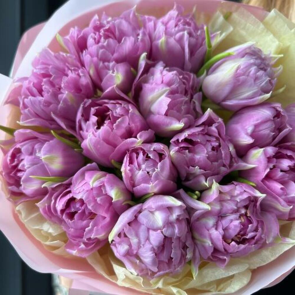Букет из 15 сиреневых тюльпанов “Сиреневый туман”