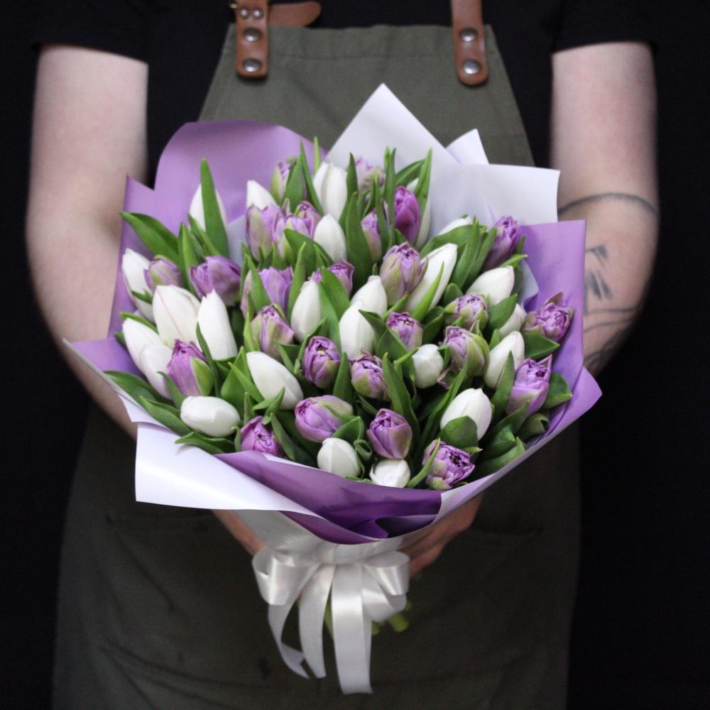 mono bouquet 49 из 51 тюльпана микс сортов double price и Royal Virgin