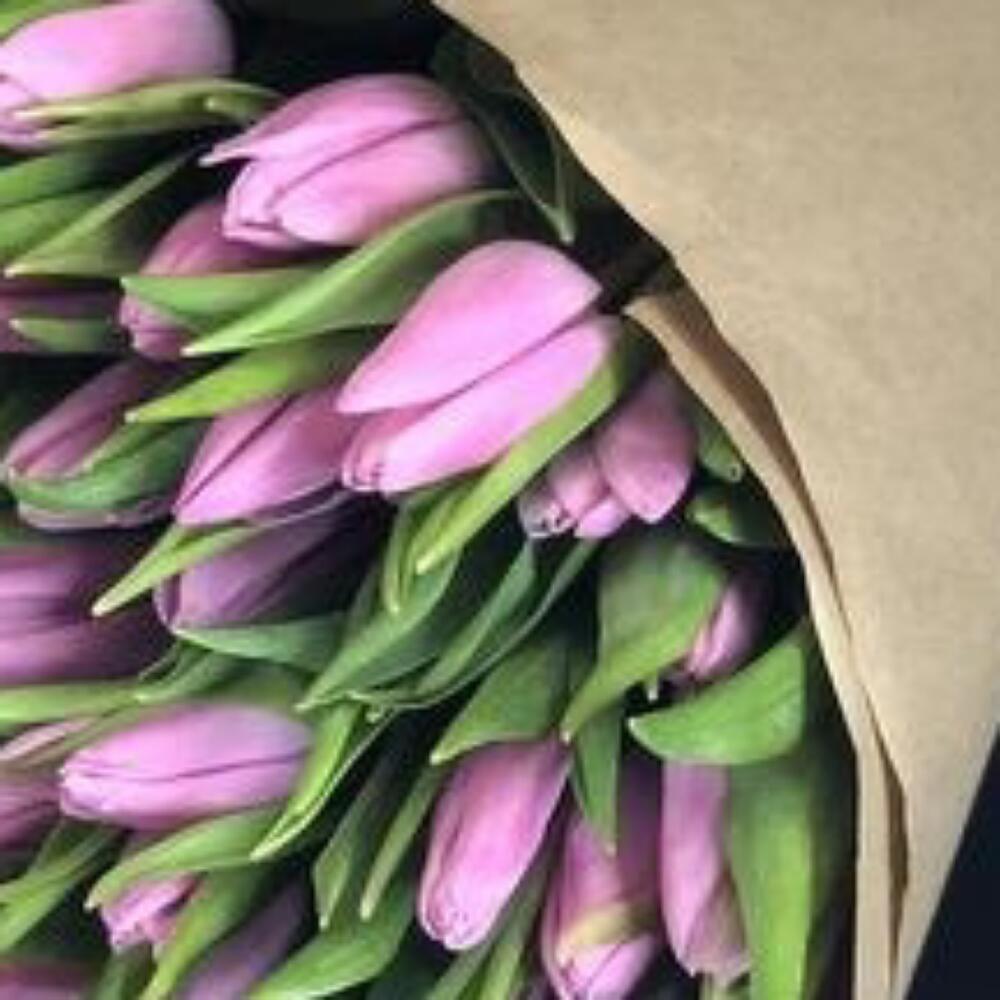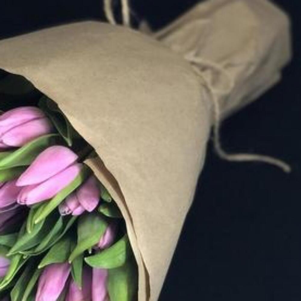 Сиреневые тюльпаны в крафте , очень стильный букет из стойкого сорта тюльпанов , будет долго радовать получателя ) Отличный вариант для подарка на 8 марта . Ваша девушка будет счастлива получить модный букет из тюльпанов . )