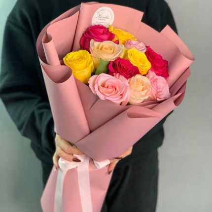 Моно букет из разноцветных роз