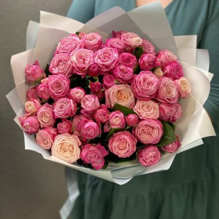 Букет Лучшее Признание S из танацетума и кустовой пионовидной розы сильвиа пинк